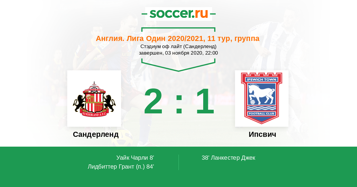 Англия. Первая Футбольная Лига 26.01.2021 Ипсвич Логотип футбольный клуб Ипсвич 0:1 Логотип футбольный клуб Сандерленд Сандерленд