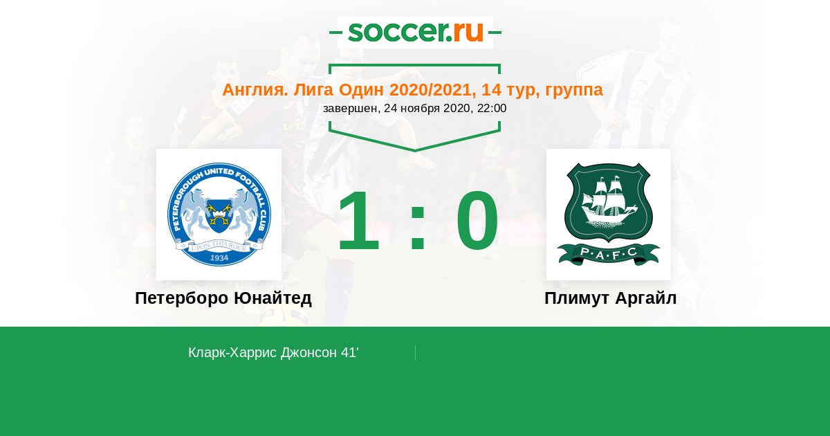 Англия. Первая Футбольная Лига 23.02.2021 Плимут Аргайл Логотип футбольный клуб Плимут Аргайл 0:3 Логотип футбольный клуб Петерборо Юнайтед Петерборо Юнайтед