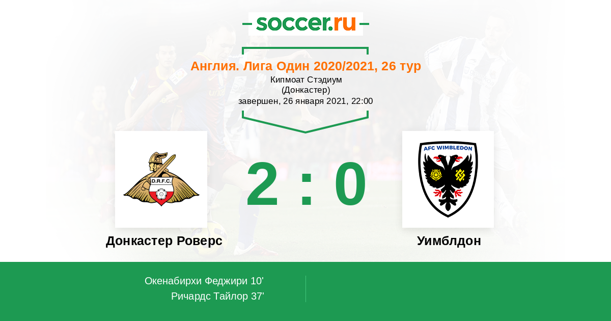 Англия. Первая Футбольная Лига 26.02.2022 Уимблдон Логотип футбольный клуб Уимблдон (Лондон) 2:2 Логотип футбольный клуб Донкастер Роверс Донкастер Роверс