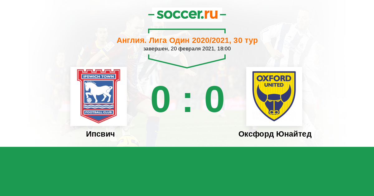 Англия. Первая Футбольная Лига 01.12.2020 Оксфорд Юнайтед Логотип футбольный клуб Оксфорд Юнайтед 0:0 Логотип футбольный клуб Ипсвич Ипсвич