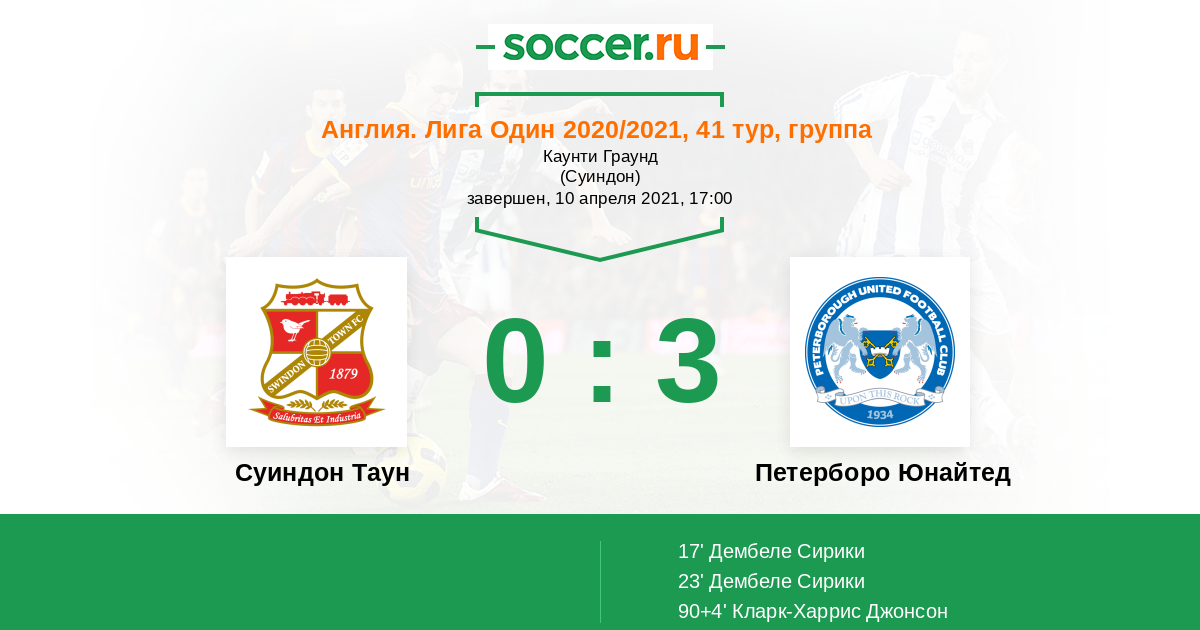 Англия. Первая Футбольная Лига 03.10.2020 Петерборо Юнайтед Логотип футбольный клуб Петерборо Юнайтед 3:1 Логотип футбольный клуб Суиндон Таун Суиндон Таун