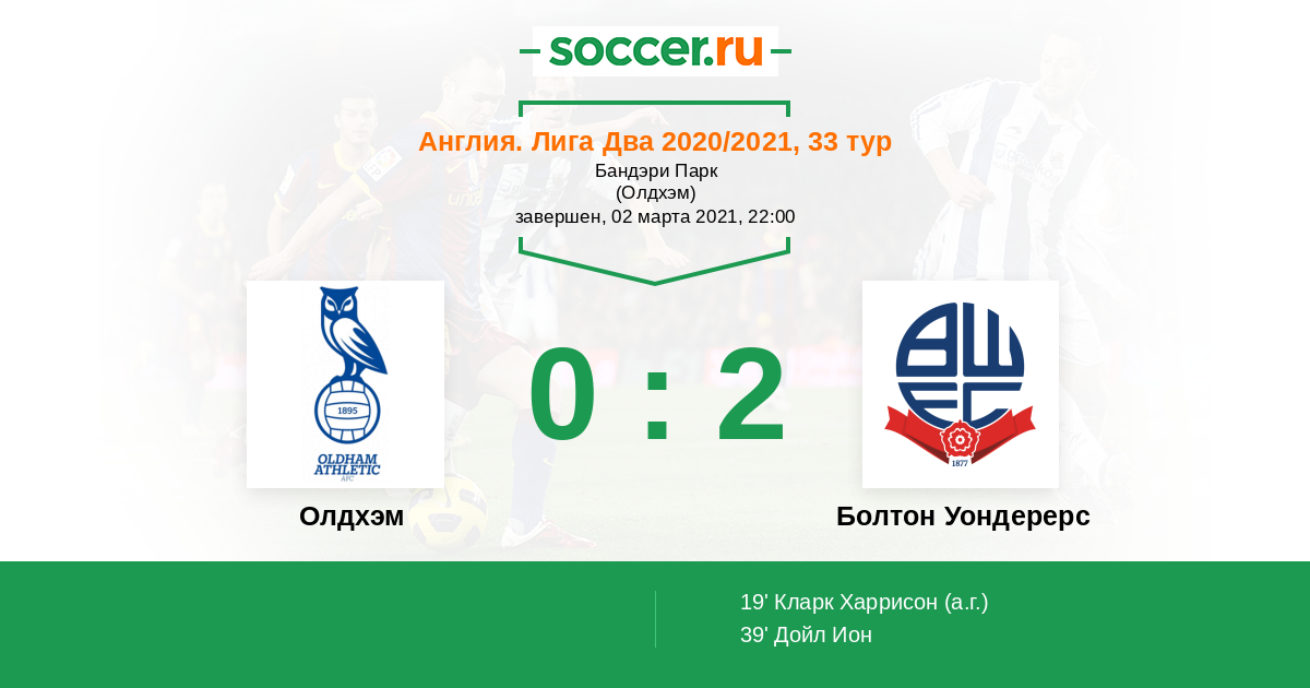 Англия. Вторая Футбольная Лига 17.10.2020 Болтон Уондерерс Логотип футбольный клуб Болтон Уондерерс 1:2 Логотип футбольный клуб Олдхэм Олдхэм