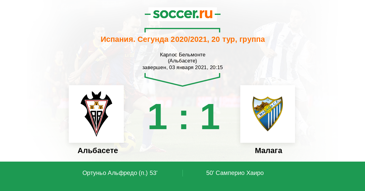 Испания. Сегунда 21.09.2019 Альбасете Логотип футбольный клуб Альбасете 1:0 Логотип футбольный клуб Малага Малага