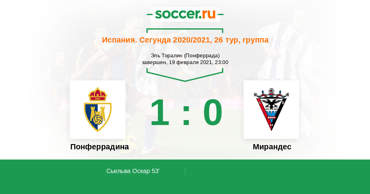 Испания. Сегунда 21.06.2020 Мирандес Логотип футбольный клуб Мирандес (Миранда де Эбро) 1:2 Логотип футбольный клуб Понферрадина Понферрадина