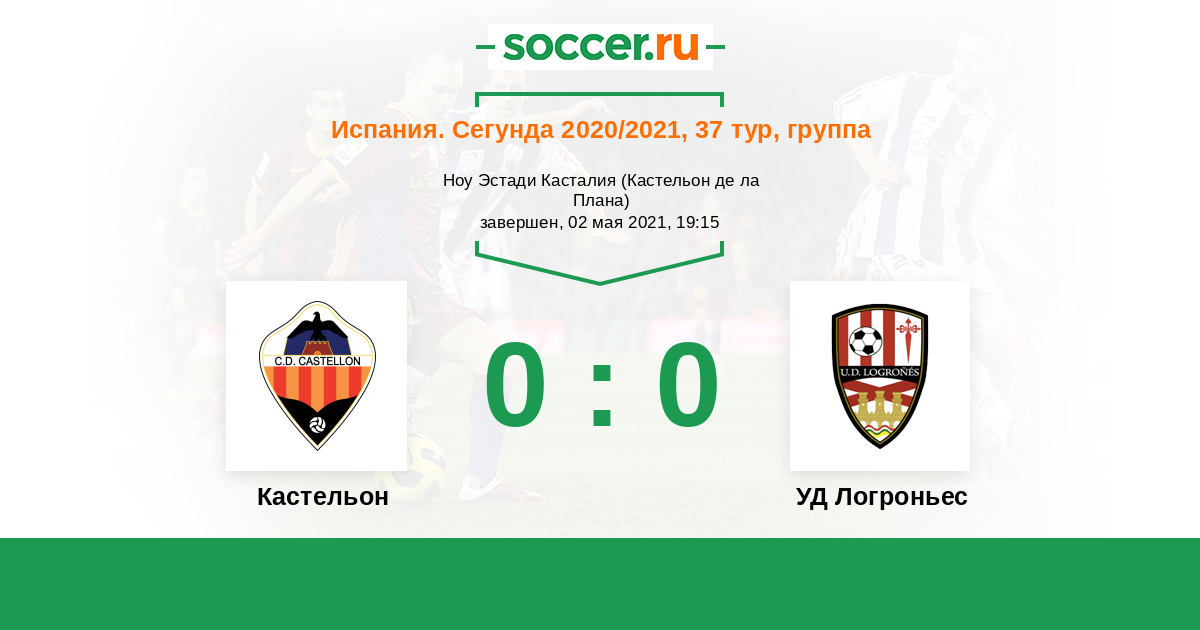 Испания. Сегунда Б: Группа 1 18.07.2020 Кастельон Логотип футбольный клуб Кастельон (Кастельон-де-ла-Плана) 0:0 Логотип футбольный клуб УД Логроньес (Логроньо) УД Логроньес