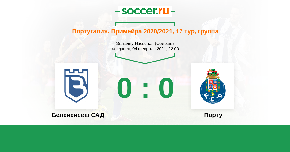 Португалия. Примейра 16.01.2022 Белененсеш САД Логотип футбольный клуб Белененсеш САД (Лиссабон) 1:4 Логотип футбольный клуб Порту Порту
