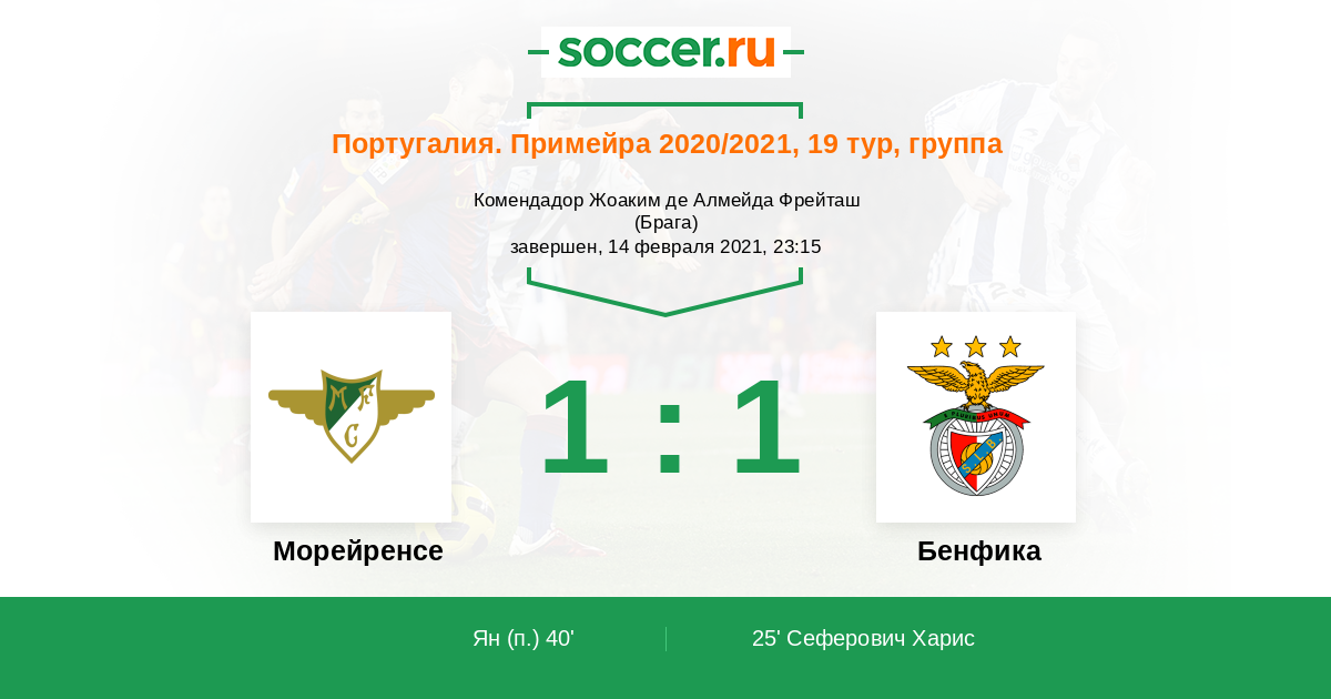 Португалия. Примейра 15.01.2022 Бенфика Логотип футбольный клуб Бенфика (Лиссабон) 1:1 Логотип футбольный клуб Морейренcе (Морейра-де-Конегуш) Морейренcе