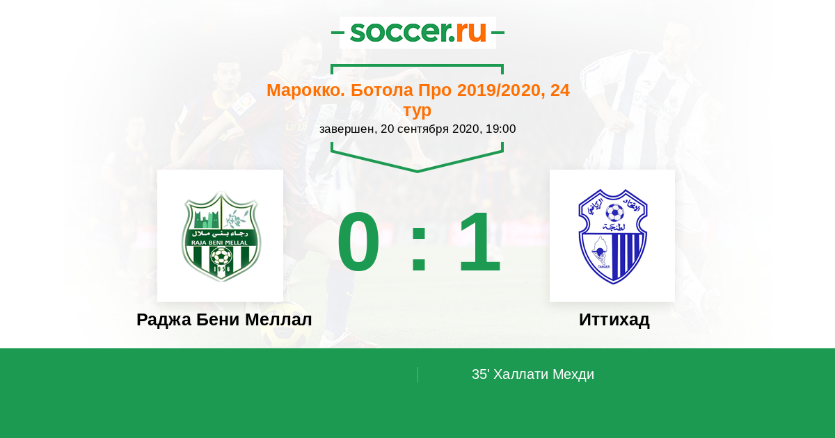 Марокко. Ботола Про 08.12.2019 ИР Анже Логотип футбольный клуб ИР Анже (Танжер) 1:0 Логотип футбольный клуб Раджа Бени Меллал Раджа Бени Меллал