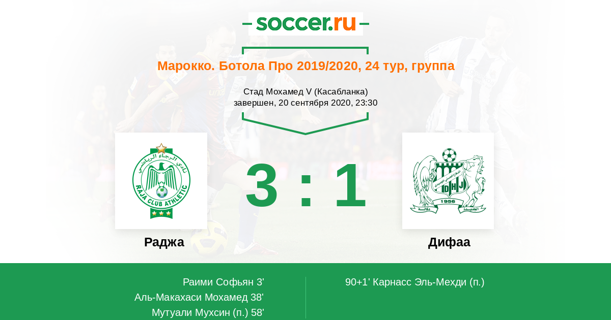 Марокко. Ботола Про 24.06.2021 Раджа Логотип футбольный клуб Раджа (Касабланка) 2:0 Логотип футбольный клуб Дифаа (Эль-Жадида) Дифаа