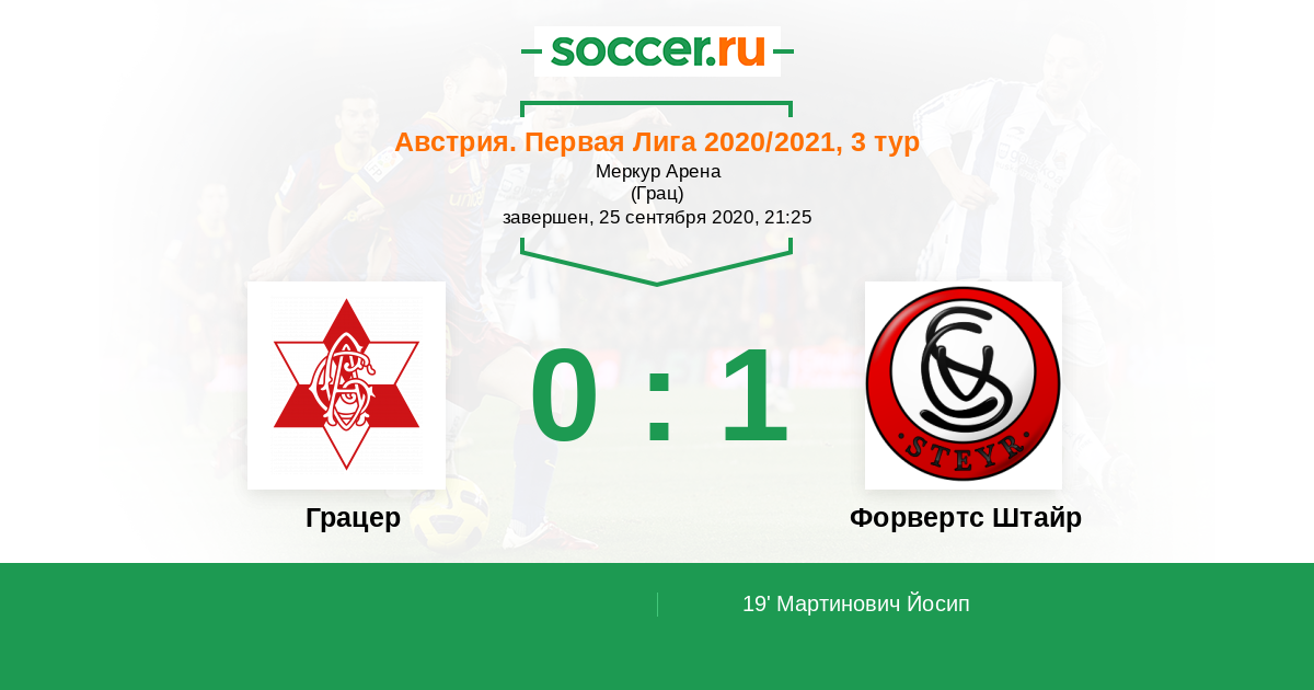 Австрия. Первая Лига 25.07.2020 Грацер Логотип футбольный клуб Грацер 1:3 Логотип футбольный клуб Форвертс Штайр Форвертс Штайр
