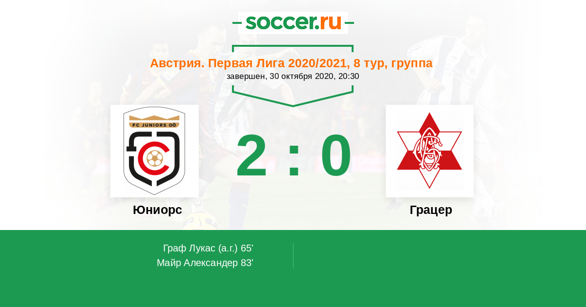 Австрия. Первая Лига 14.04.2021 Грацер Логотип футбольный клуб Грацер 3:0 Логотип футбольный клуб Юниорс (Пашинг) Юниорс