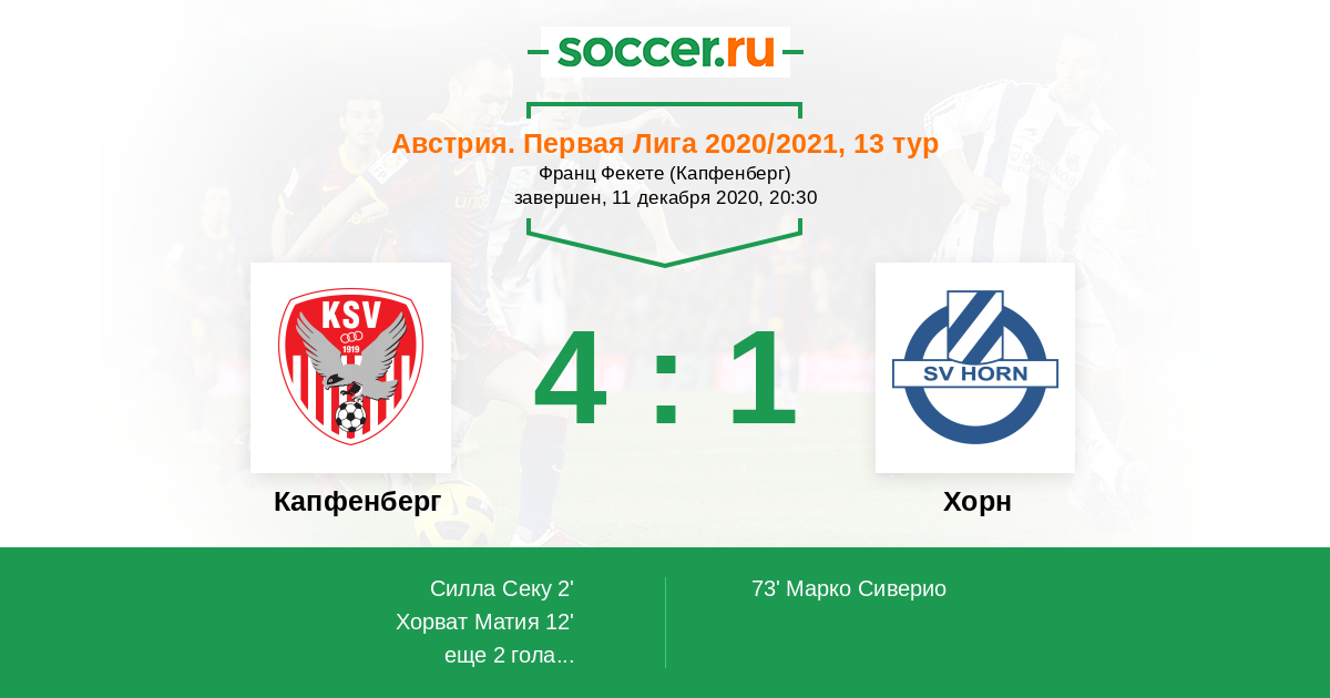 Австрия. Первая Лига 19.06.2020 Капфенберг Логотип футбольный клуб Капфенберг 3:1 Логотип футбольный клуб Хорн Хорн