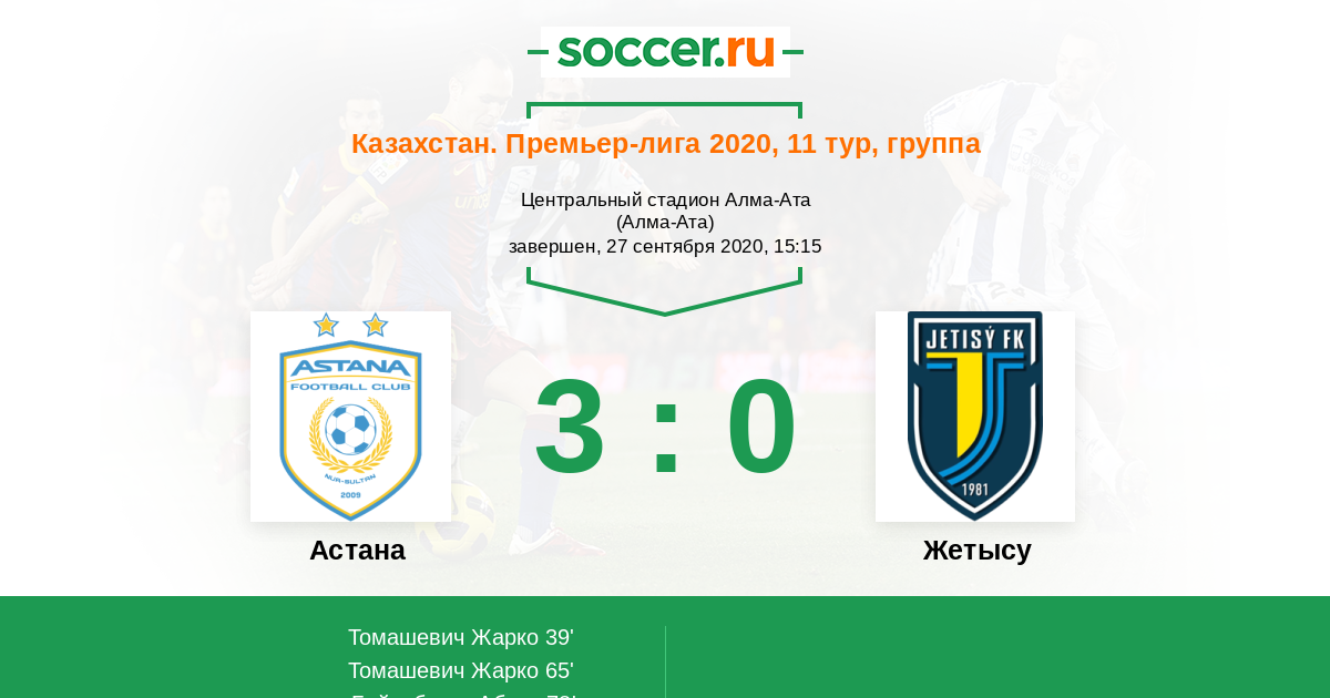 Казахстан. Премьер-лига 21.10.2012 Астана Логотип футбольный клуб Астана 1:0 Логотип футбольный клуб Жетысу (Талдыкорган) Жетысу