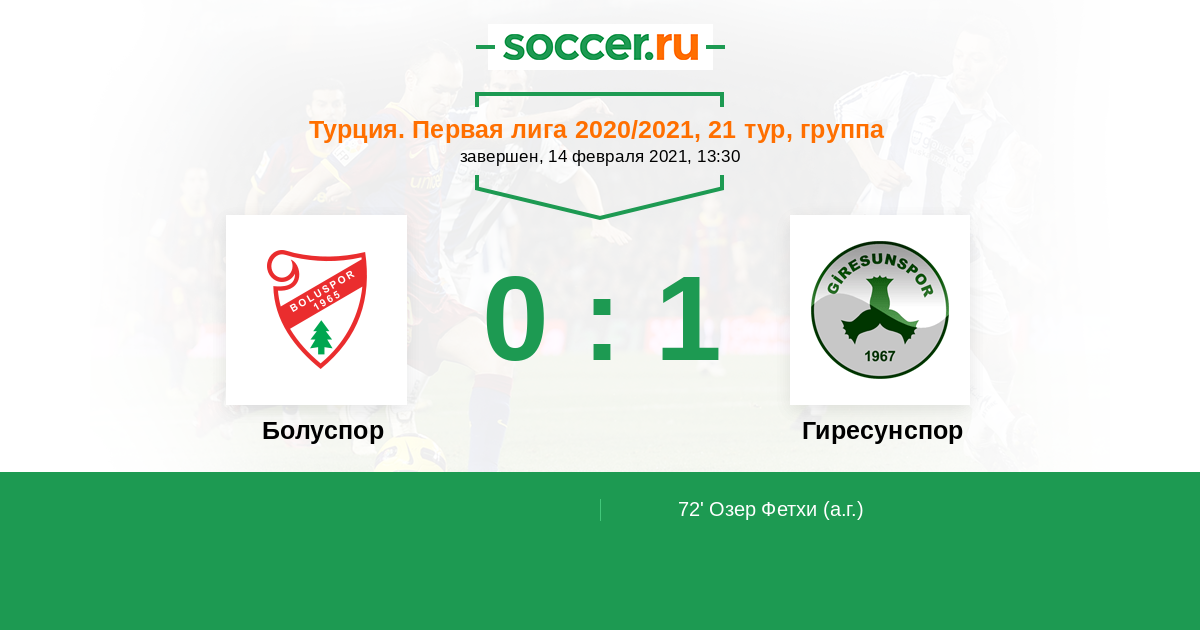 Турция. Первая лига 02.03.2020 Гиресунспор Логотип футбольный клуб Гиресунспор 2:0 Логотип футбольный клуб Болуспор Болуспор
