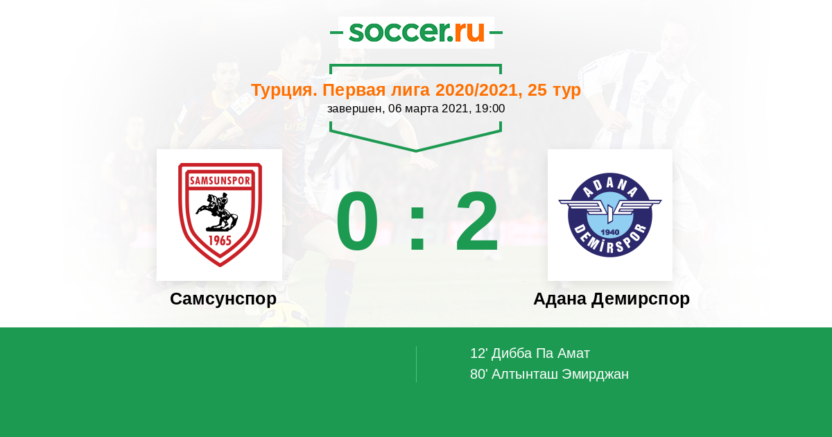 Турция. Первая лига 01.11.2020 Адана Демирспор Логотип футбольный клуб Адана Демирспор 1:1 Логотип футбольный клуб Самсунспор Самсунспор