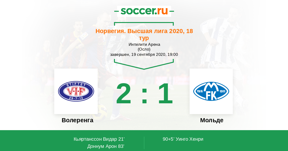 Норвегия. Высшая лига 19.09.2021 Волеренга Логотип футбольный клуб Волеренга (Осло) 1:1 Логотип футбольный клуб Мольде Мольде