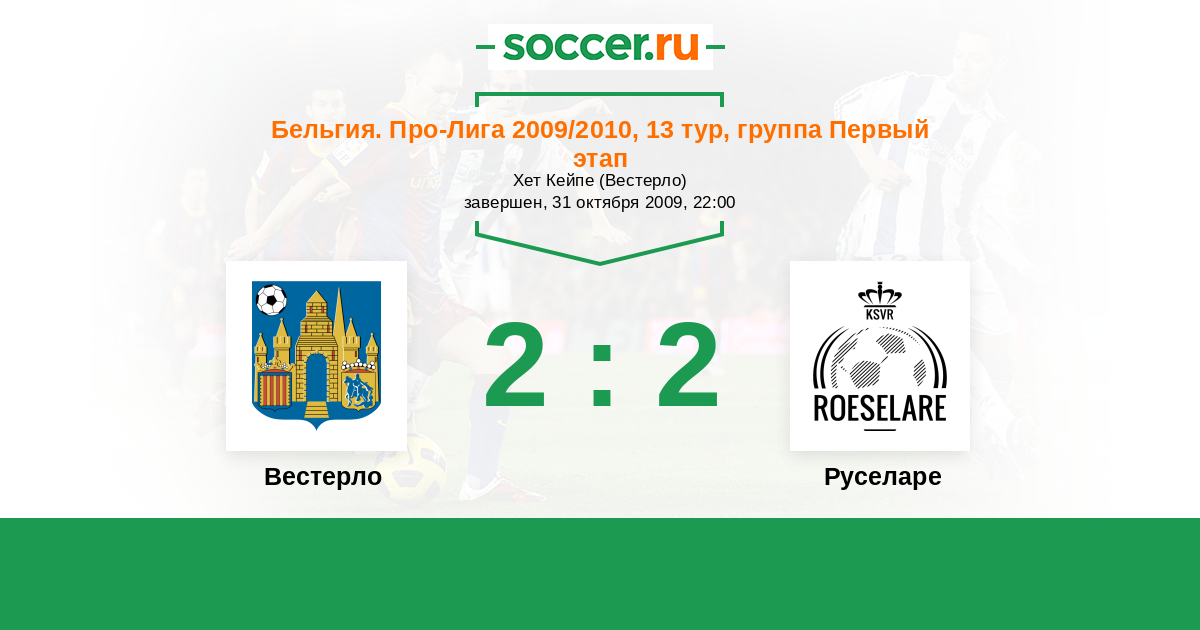 Бельгия. Про-Лига 21.03.2010 Руселаре Логотип футбольный клуб Руселаре 0:0 Логотип футбольный клуб Вестерло Вестерло