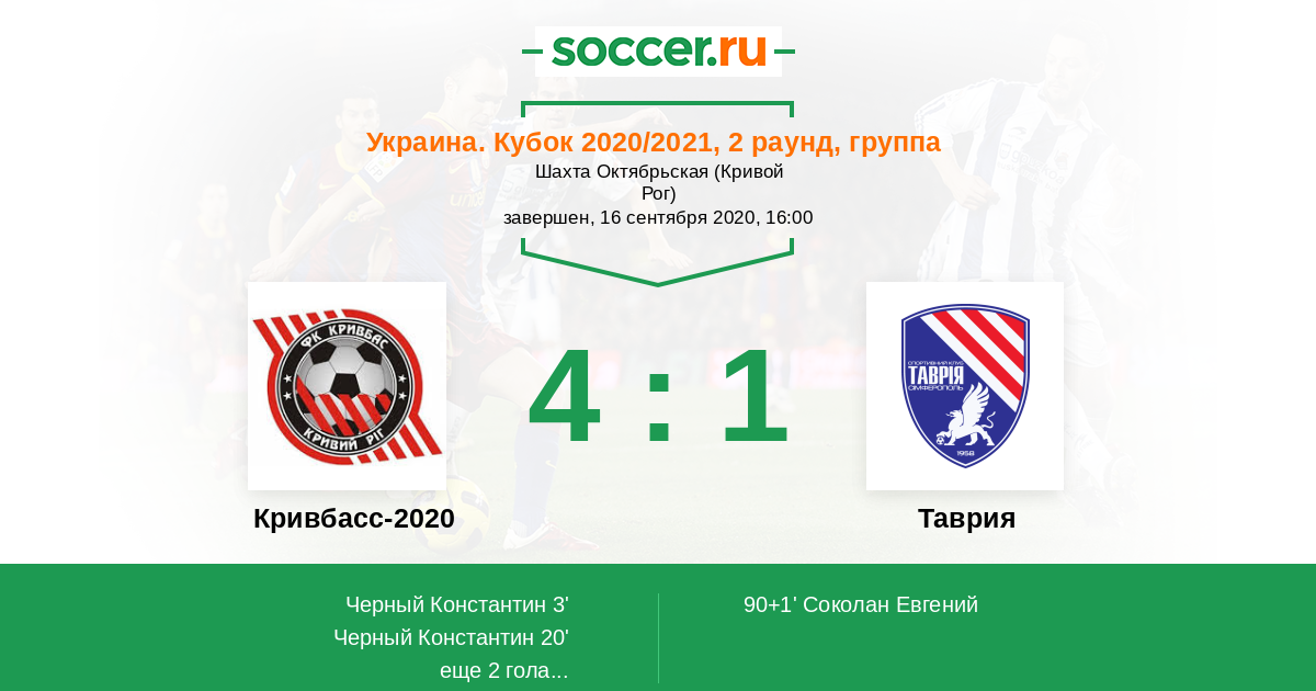 Украина. Кубок 16.09.2020 Кривбасс-2020   4:1   Таврия