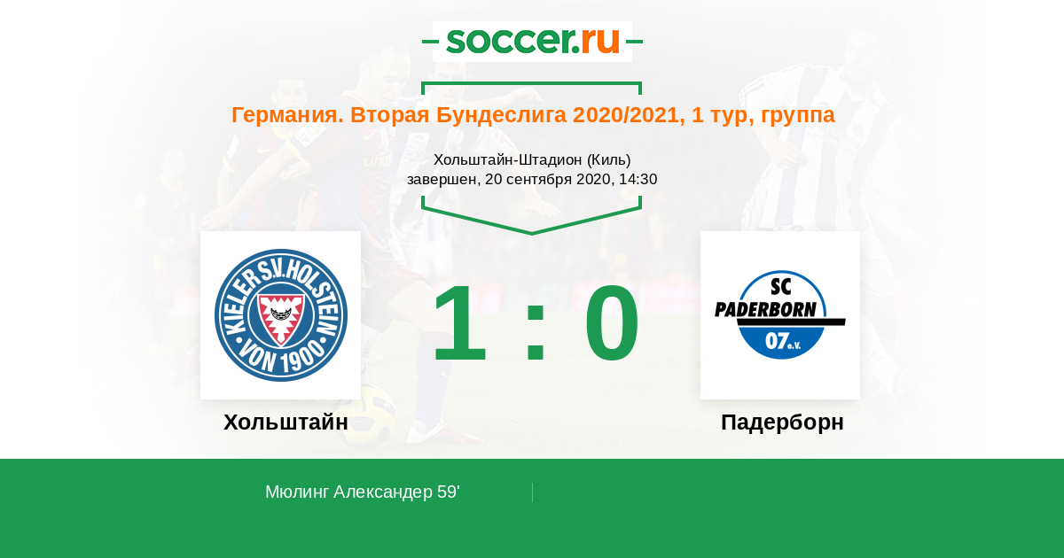 Германия. Бундеслига 2 02.09.2023 Хольштайн Логотип футбольный клуб Хольштайн (Киль) 2:1 Логотип футбольный клуб Падерборн Падерборн