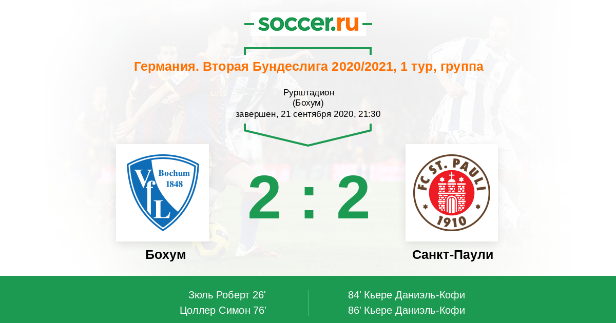 Германия. Бундеслига 2 28.01.2021 Санкт-Паули Логотип футбольный клуб Санкт-Паули (Гамбург) 2:3 Логотип футбольный клуб Бохум Бохум