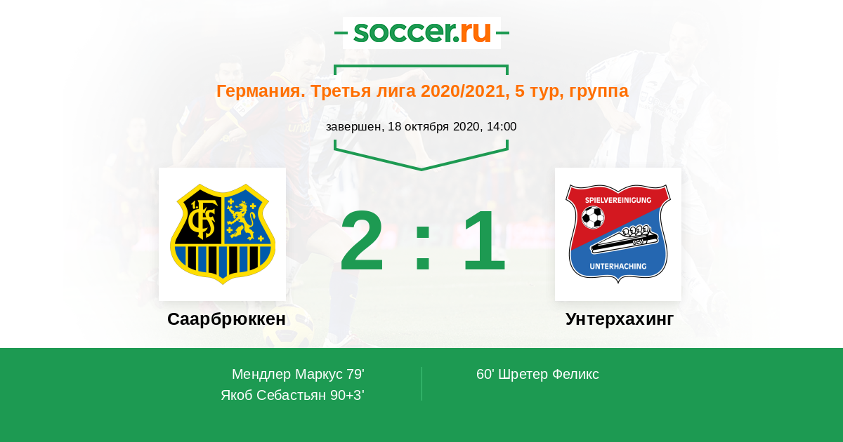 Германия. Третья лига 14.02.2021 Унтерхахинг Логотип футбольный клуб Унтерхахинг 0:1 Логотип футбольный клуб Саарбрюккен Саарбрюккен