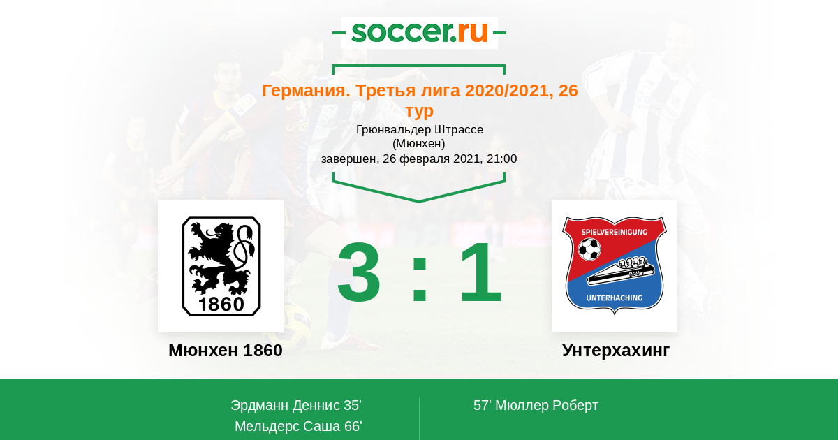 Германия. Третья лига 26.10.2020 Унтерхахинг Логотип футбольный клуб Унтерхахинг 0:2 Логотип футбольный клуб Мюнхен 1860 Мюнхен 1860