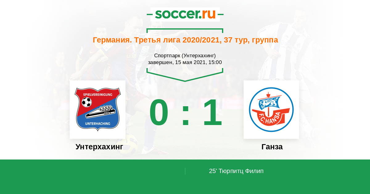 Германия. Третья лига 07.05.2025 Унтерхахинг Логотип футбольный клуб Унтерхахинг 0:2 Логотип футбольный клуб Ганза (Росток) Ганза