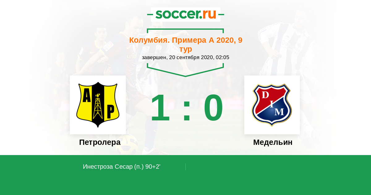 Колумбия. Примера А 21.10.2019 Медельин Логотип футбольный клуб Медельин 2:0 Логотип футбольный клуб Петролера Петролера