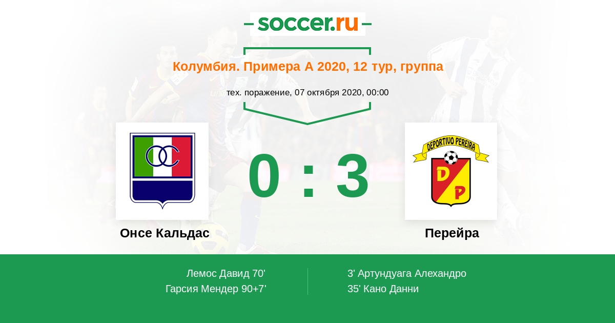 Колумбия. Примера А 02.03.2021 Перейра Логотип футбольный клуб Перейра 2:0 Логотип футбольный клуб Онсе Кальдас (Манисалес) Онсе Кальдас