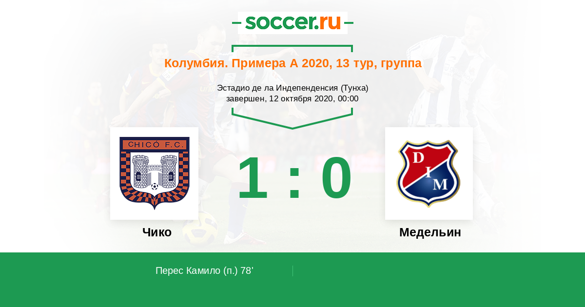 Колумбия. Примера А 07.10.2012 Чико Логотип футбольный клуб Чико (Тунха) 1:0 Логотип футбольный клуб Медельин Медельин
