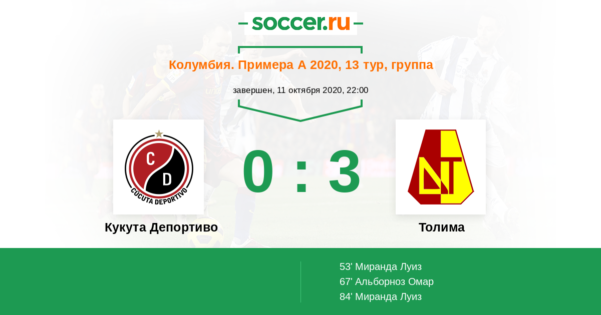 Колумбия. Примера А 20.10.2019 Толима Логотип футбольный клуб Толима (Ибаге) 2:1 Логотип футбольный клуб Кукута Депортиво Кукута Депортиво