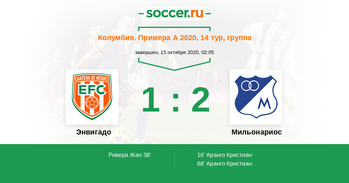 Колумбия. Примера А 17.01.2021 Мильонариос Логотип футбольный клуб Мильонариос (Богота) 1:0 Логотип футбольный клуб Энвигадо Энвигадо