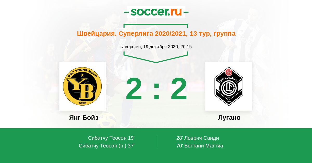 Швейцария. Суперлига 16.02.2020 Лугано Логотип футбольный клуб Лугано 2:1 Логотип футбольный клуб Янг Бойз (Берн) Янг Бойз