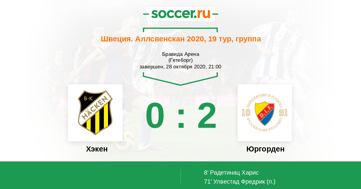 Швеция. Аллсвенскан 01.08.2020 Юргорден Логотип футбольный клуб Юргорден (Стокгольм) 3:1 Логотип футбольный клуб Хэкен (Гетеборг) Хэкен