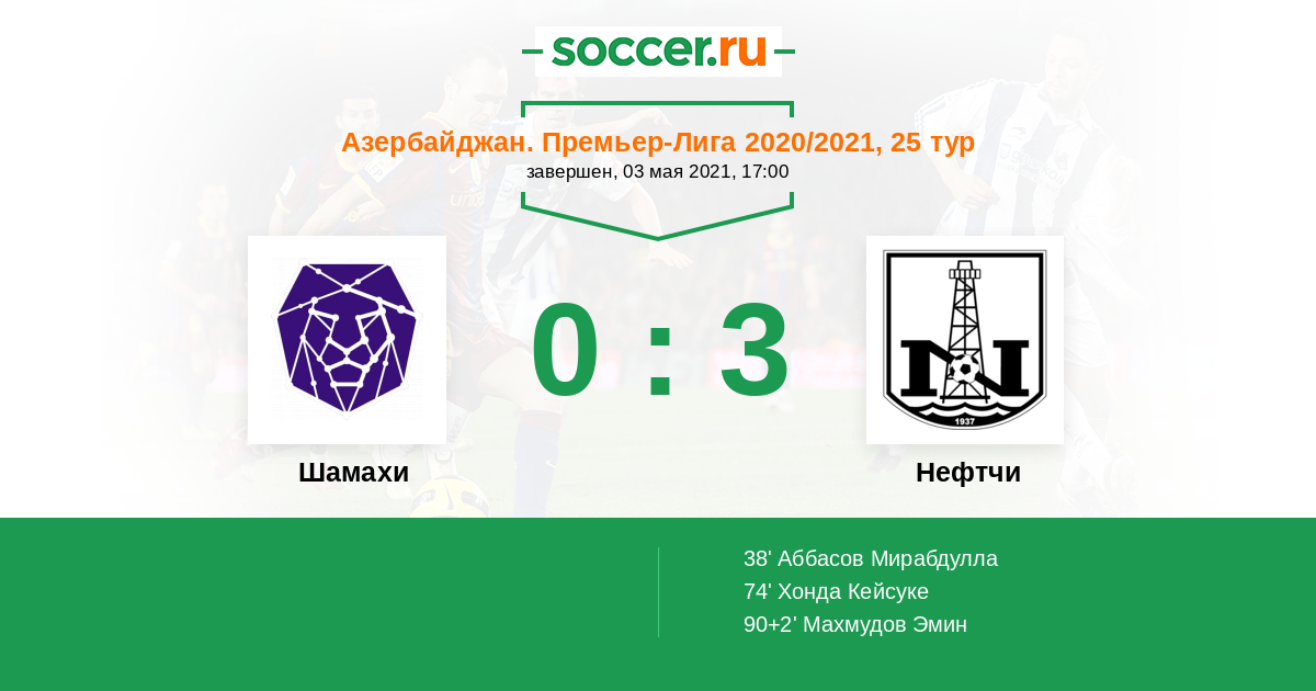 Азербайджан. Премьер-Лига 23.12.2022 Нефтчи Логотип футбольный клуб Нефтчи (Баку) 3:0 Логотип футбольный клуб Шамахи (Баку) Шамахи
