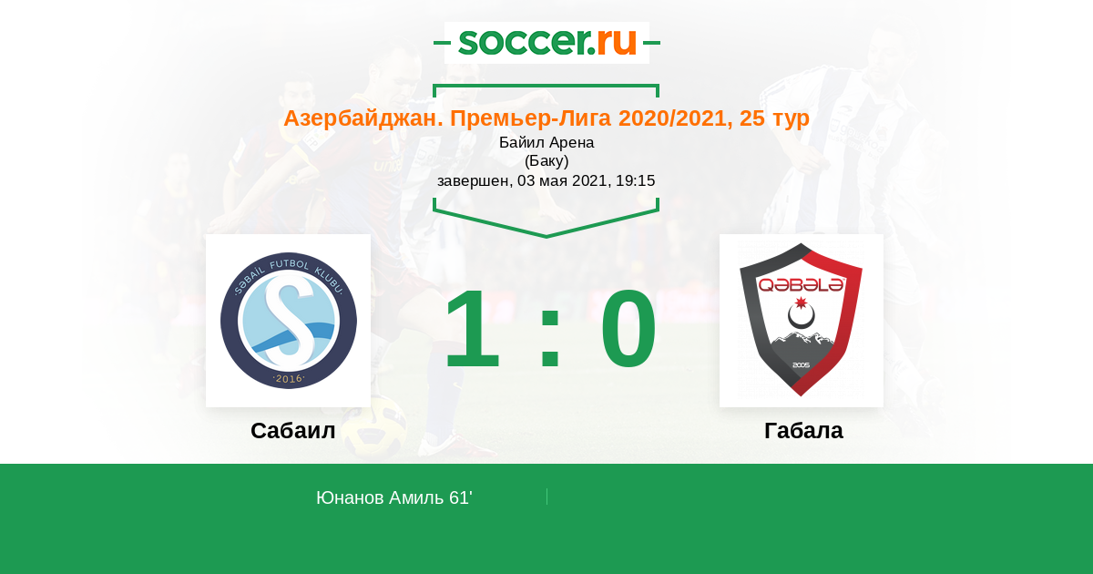 Азербайджан. Премьер-Лига 27.04.2019 Сабаил Логотип футбольный клуб Сабаил (Баку) 2:1 Логотип футбольный клуб Габала Габала