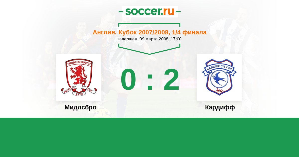 Англия. Чемпионшип 06.03.2010 Кардифф Логотип футбольный клуб Кардифф 1:0 Логотип футбольный клуб Мидлсбро Мидлсбро