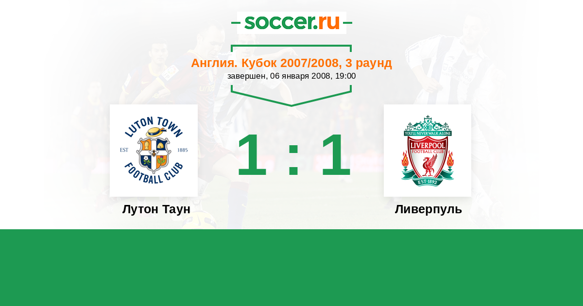 Англия. Кубок 15.01.2008 Ливерпуль Логотип футбольный клуб Ливерпуль 5:0 Логотип футбольный клуб Лутон Таун Лутон Таун