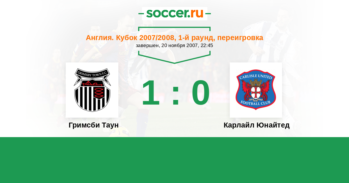 Англия. Кубок 10.11.2007 Карлайл Юнайтед Логотип футбольный клуб Карлайл Юнайтед (Карлайсл) 1:1 Логотип футбольный клуб Гримсби Таун (Клифорпс) Гримсби Таун