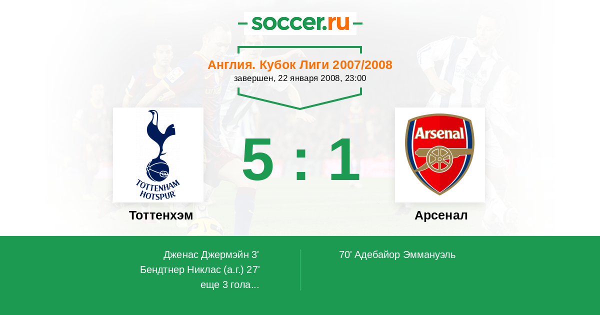 Англия. Кубок Лиги 09.01.2008 Арсенал Логотип футбольный клуб Арсенал (Лондон) 1:1 Логотип футбольный клуб Тоттенхэм (Лондон) Тоттенхэм