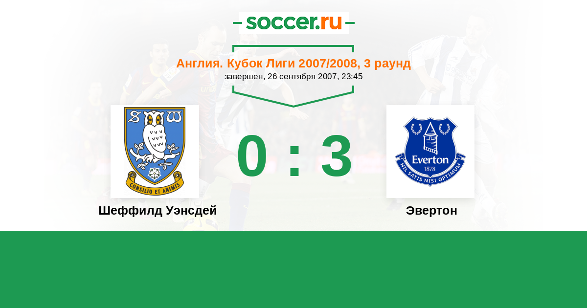 Англия. Кубок Лиги 24.09.2019 Шеффилд Уэнсдей Логотип футбольный клуб Шеффилд Уэнсдей 0:2 Логотип футбольный клуб Эвертон (Ливерпуль) Эвертон