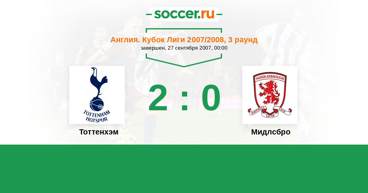 Англия. Премьер-Лига 03.11.2007 Мидлсбро Логотип футбольный клуб Мидлсбро 1:1 Логотип футбольный клуб Тоттенхэм (Лондон) Тоттенхэм