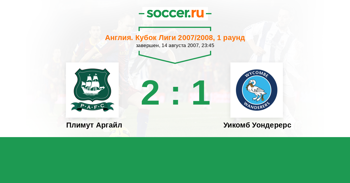 Англия. Вторая Футбольная Лига 16.09.2014 Плимут Аргайл Логотип футбольный клуб Плимут Аргайл 0:1 Логотип футбольный клуб Уикомб Уондерерс (Хай-Вайкомб) Уикомб Уондерерс