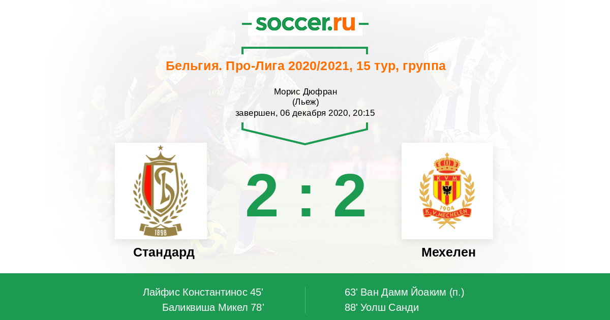 Бельгия. Про-Лига 26.02.2017 Стандард Логотип футбольный клуб Стандард (Льеж) 2:2 Логотип футбольный клуб Мехелен Мехелен