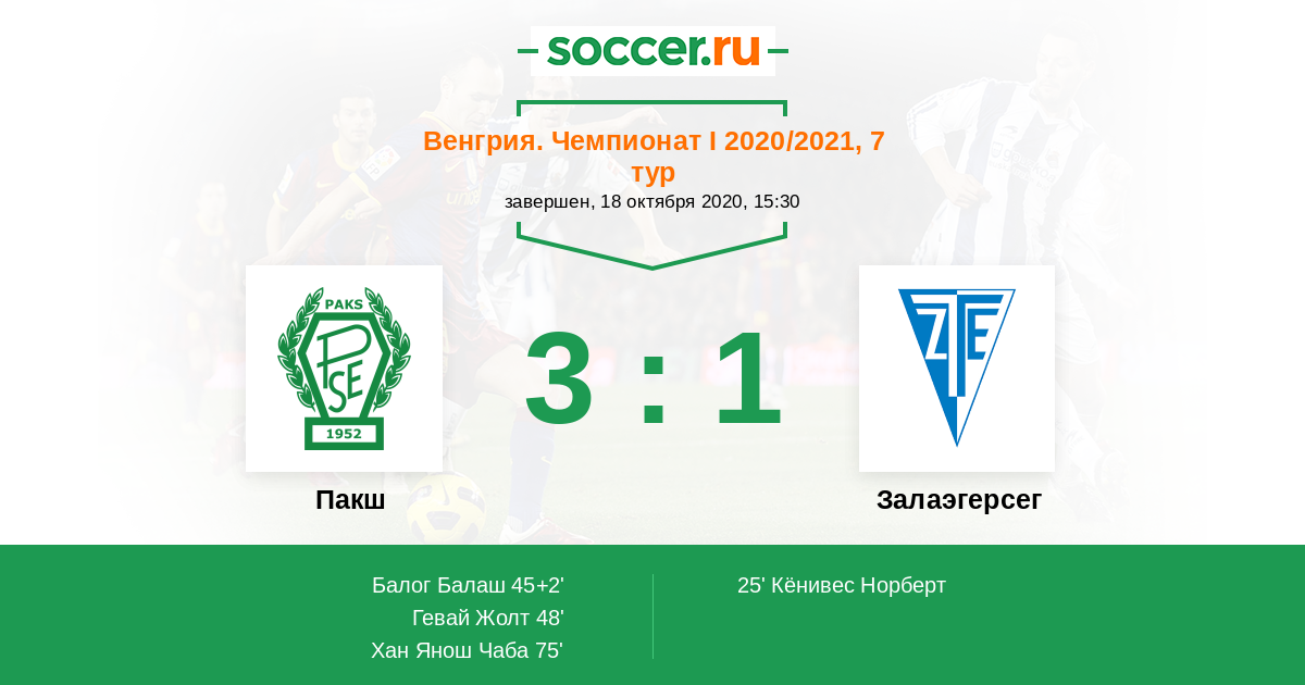 Венгрия. Чемпионат 1 28.09.2019 Залаэгерсег Логотип футбольный клуб Залаэгерсег 3:1 Логотип футбольный клуб Пакш Пакш
