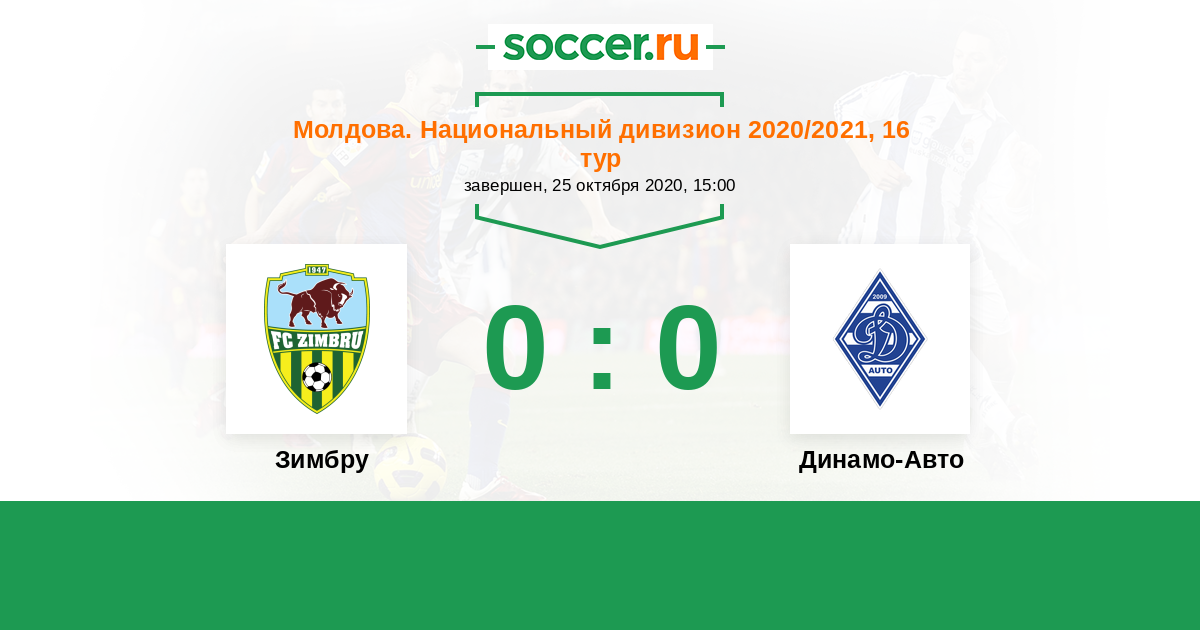 Молдова. Национальный дивизион 19.10.2019 Динамо-Авто Логотип футбольный клуб Динамо-Авто (Тирасполь) 4:0 Логотип футбольный клуб Зимбру (Кишинев) Зимбру