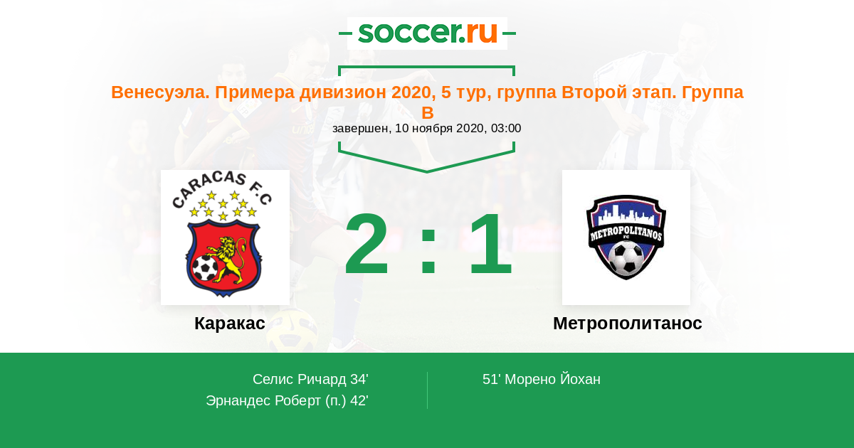 Венесуэла. Примера дивизион 05.12.2020 Метрополитанос Логотип футбольный клуб Метрополитанос (Лос-Текес) 2:1 Логотип футбольный клуб Каракас Каракас