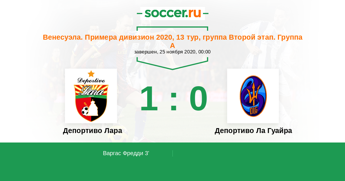 Венесуэла. Примера дивизион 25.10.2020 Депортиво Ла Гуайра Логотип футбольный клуб Депортиво Ла Гуайра (Каракас) 1:0 Логотип Депортиво Лара (Баркисимето) Депортиво Лара
