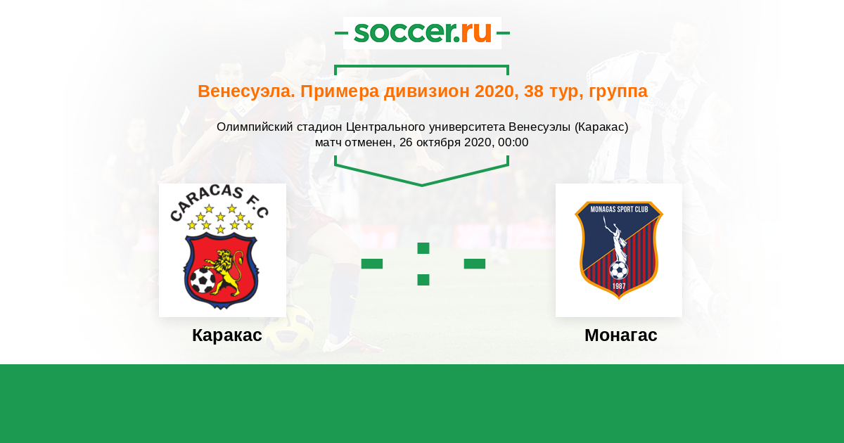 Венесуэла. Примера дивизион 02.11.2020 Каракас Логотип футбольный клуб Каракас 1:0 Логотип футбольный клуб Монагас (Матурин) Монагас