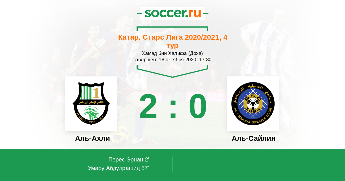 Катар. Старс Лига 21.09.2018 Аль-Сайлия Логотип футбольный клуб Аль-Сайлия (Доха) 4:2 Логотип футбольный клуб Аль-Ахли (Доха) Аль-Ахли